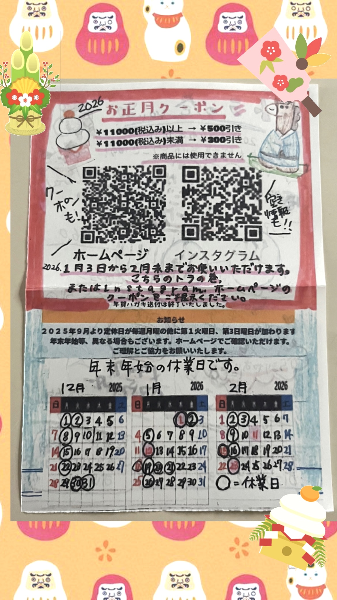 本年もよろしくお願い致します 2026-01-01 (木) 明けましておめでとうございます🎍本年もよろしくお願い致しますこの画像をご提示頂くと期間中何度でもご利用いただけますご来店お待ちしております美容室 トラスト