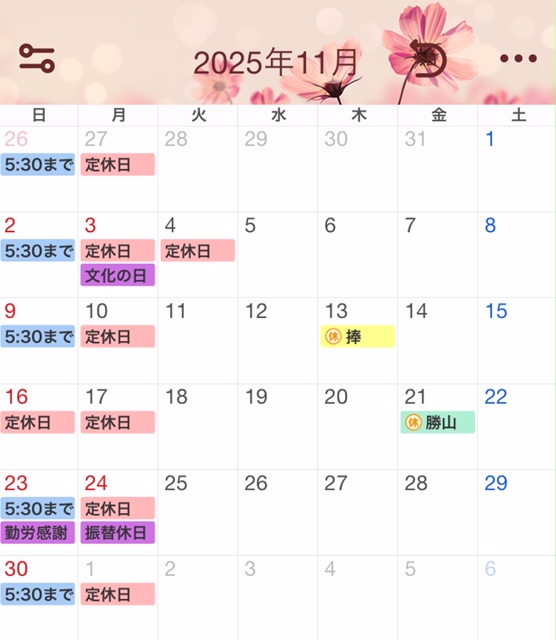 11月のお休み⬅ここをクリック!