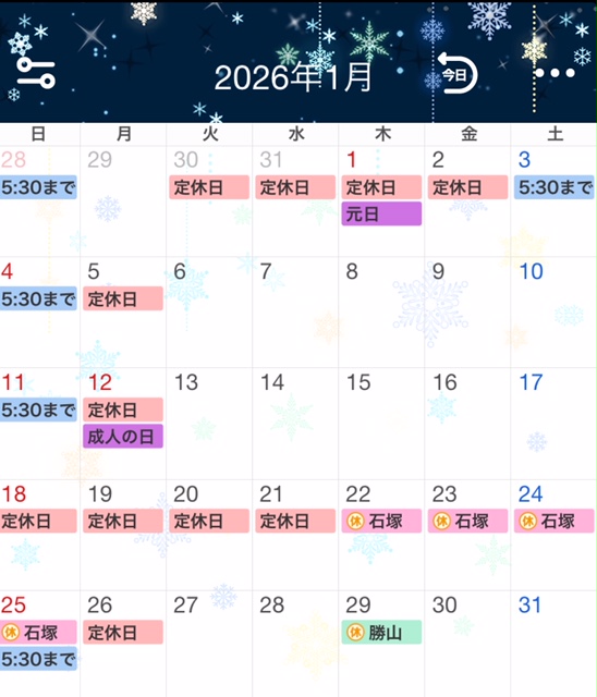1月のお休み⬅ここをクリック!